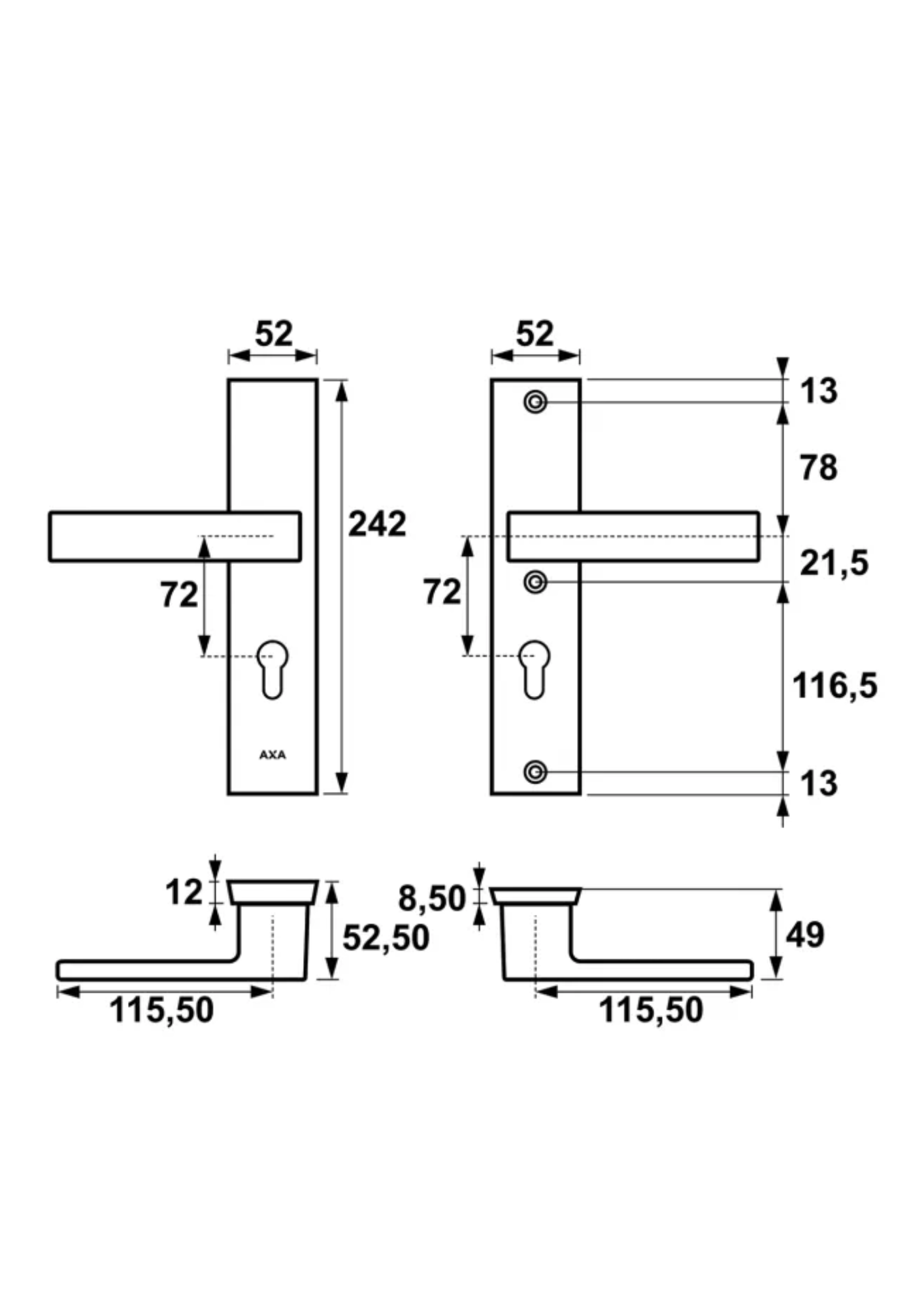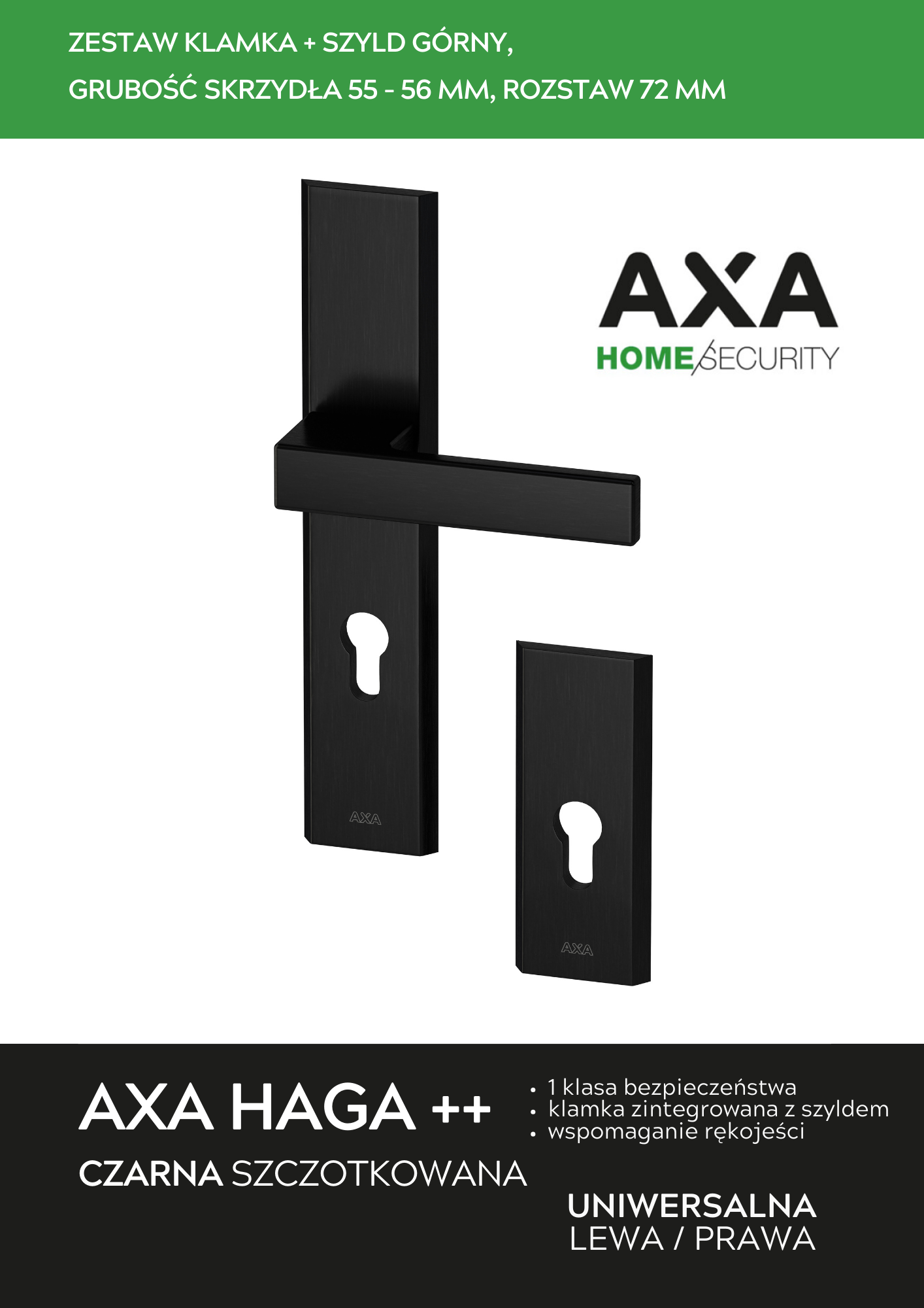 KLAMKA AXA ROYAL++ CZARNA ( ZESTAW klamka + szyld górny) grubość skrzydła 55- 56 mm, rozstaw 72 mm