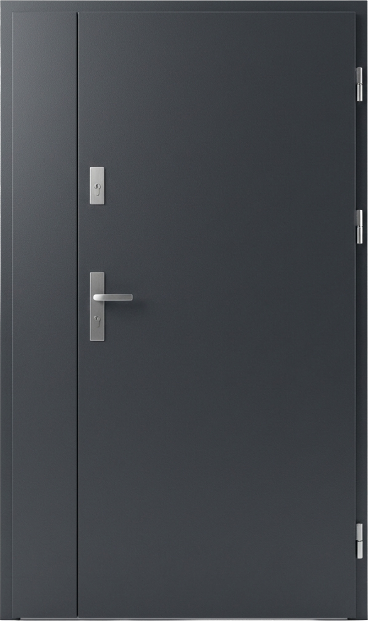 • skrzydło czynne – wyposażone w klamkę, dwa zamki kasetowe oraz możliwość zastosowania przeszklenia,