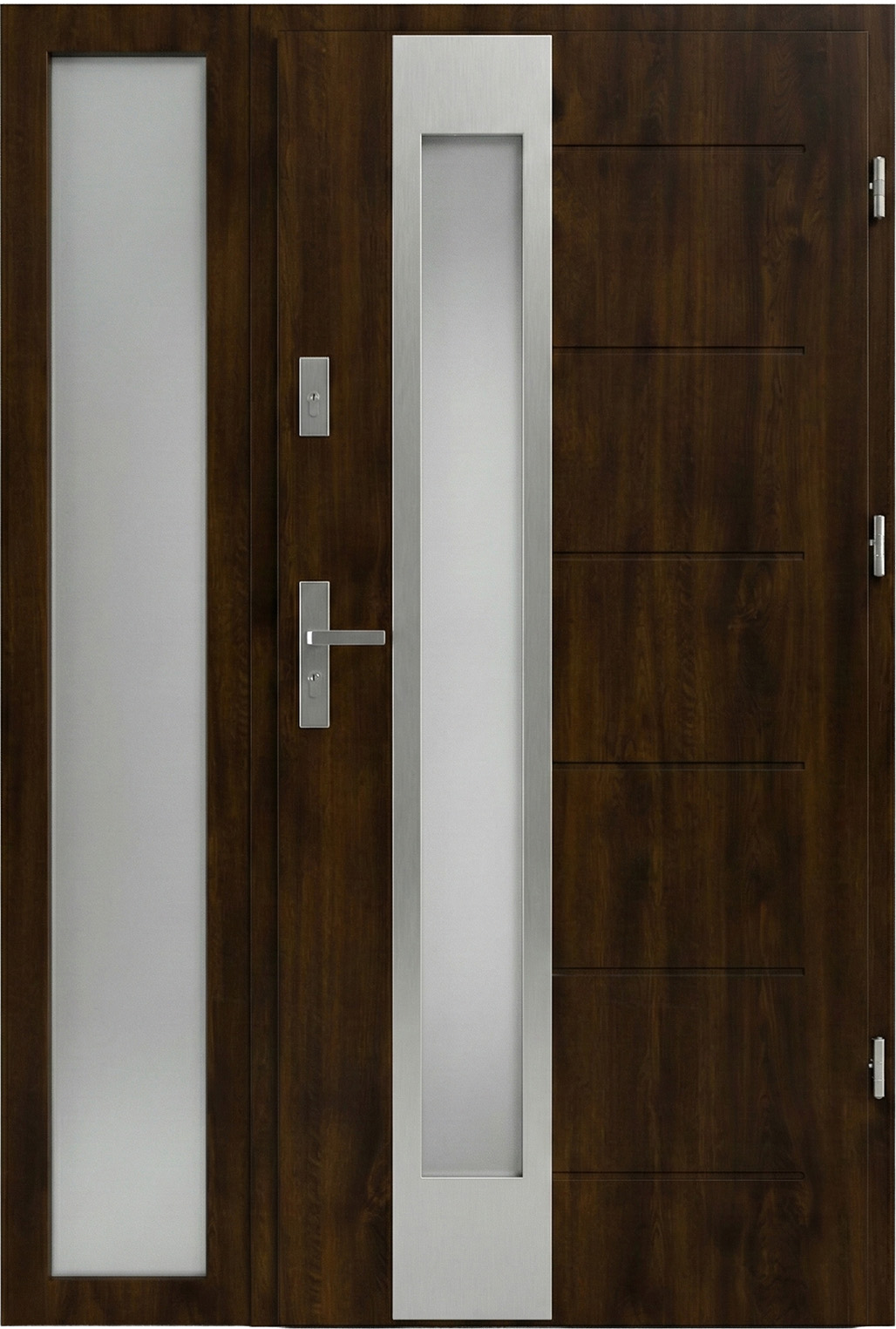 Dostępne są różne konfiguracje zabudowy: doświetle jednostronne z lewej lub prawej strony, doświetla obustronne, naświetle górne, jak również dowolne kombinacje tych elementów, tworzące rozbudowane i spójne wizualnie zestawy drzwiowe. Zestawy drzwiowe z doświetlami można rozbudować do szerokości 2,7 metra oraz do wysokości 2,8 metra, co umożliwia realizację dużych, efektownych stref wejściowych.