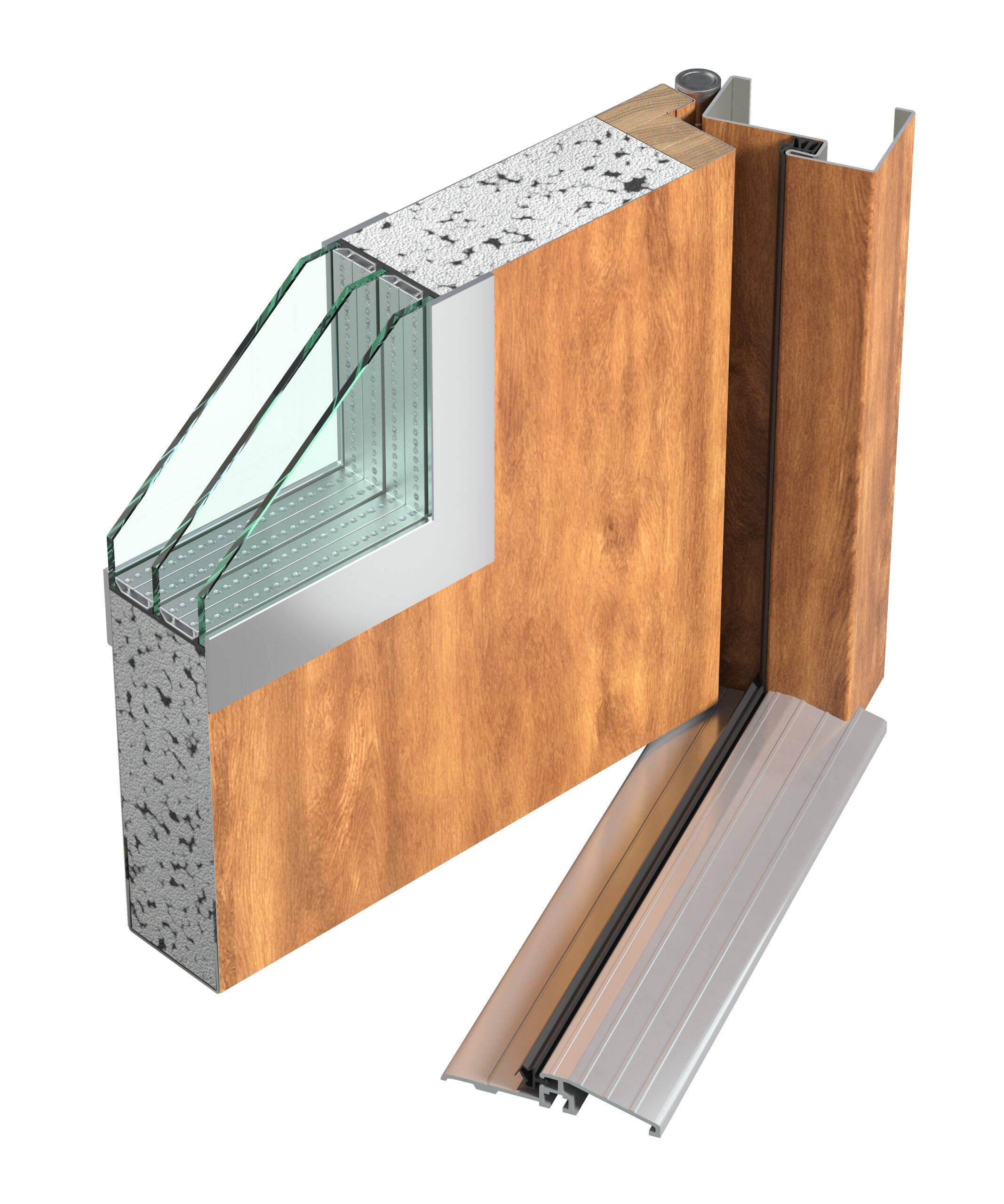 • Skrzydło o grubości 56 mm wypełnione  płytą izolacyjną EPS o podwyższonej gęstości zapewnia dobre parametry termiczne i akustyczne