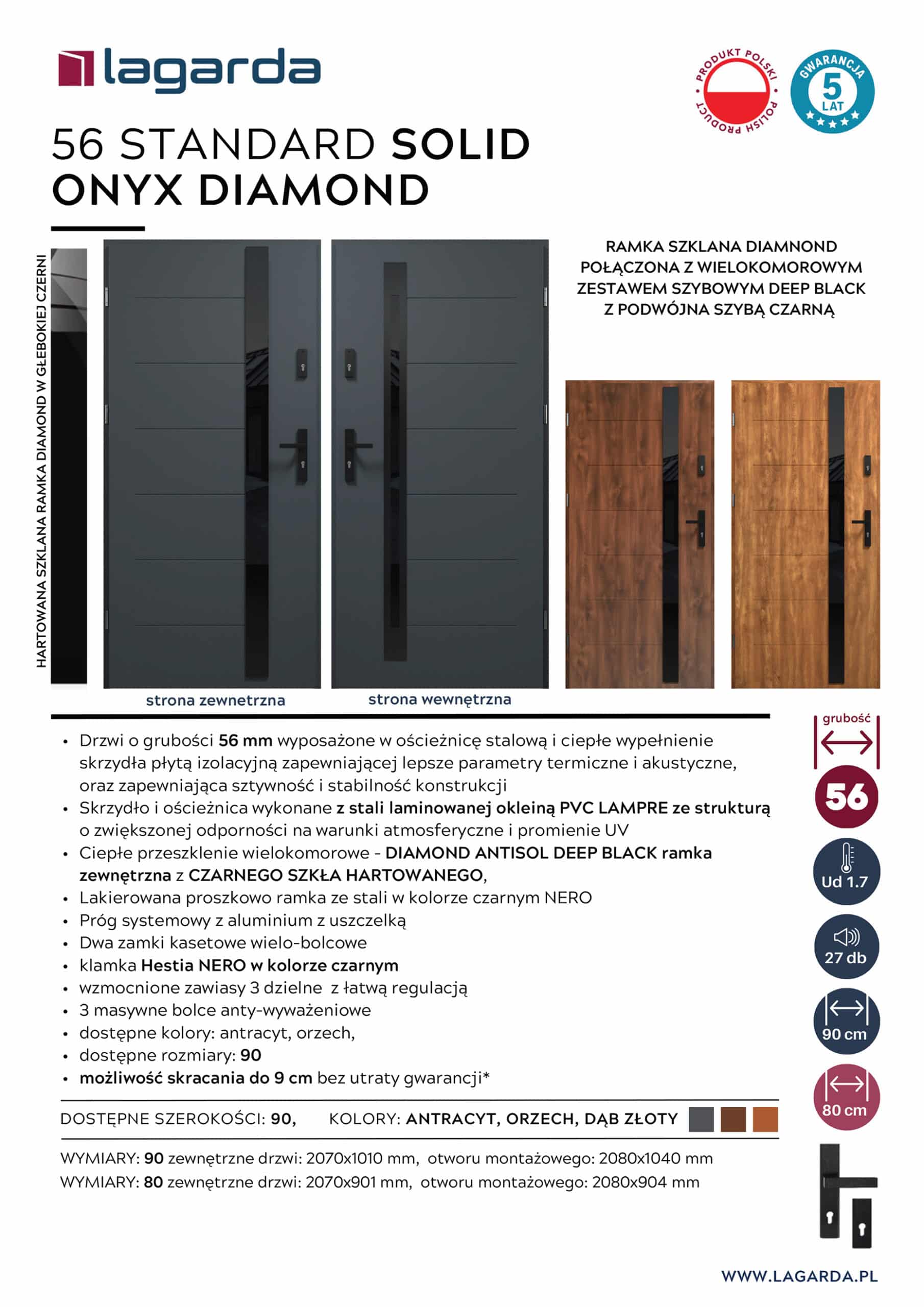 • Dostępne kolory: antracyt, orzech, dąb złoty