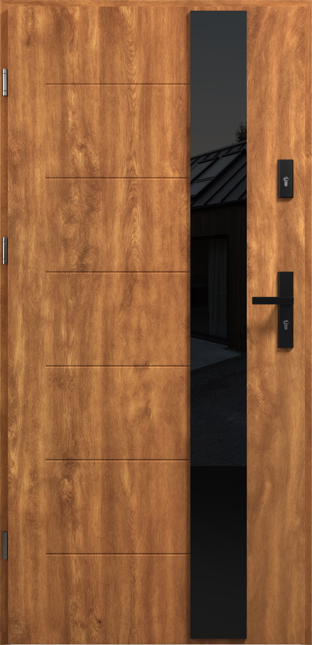 • Opcjonalnie  klamka AXA HAGA ++ ze zintegrowaną rękojeścią i wspomaganiem, w wersji INOX lub czarnej (dopłata)