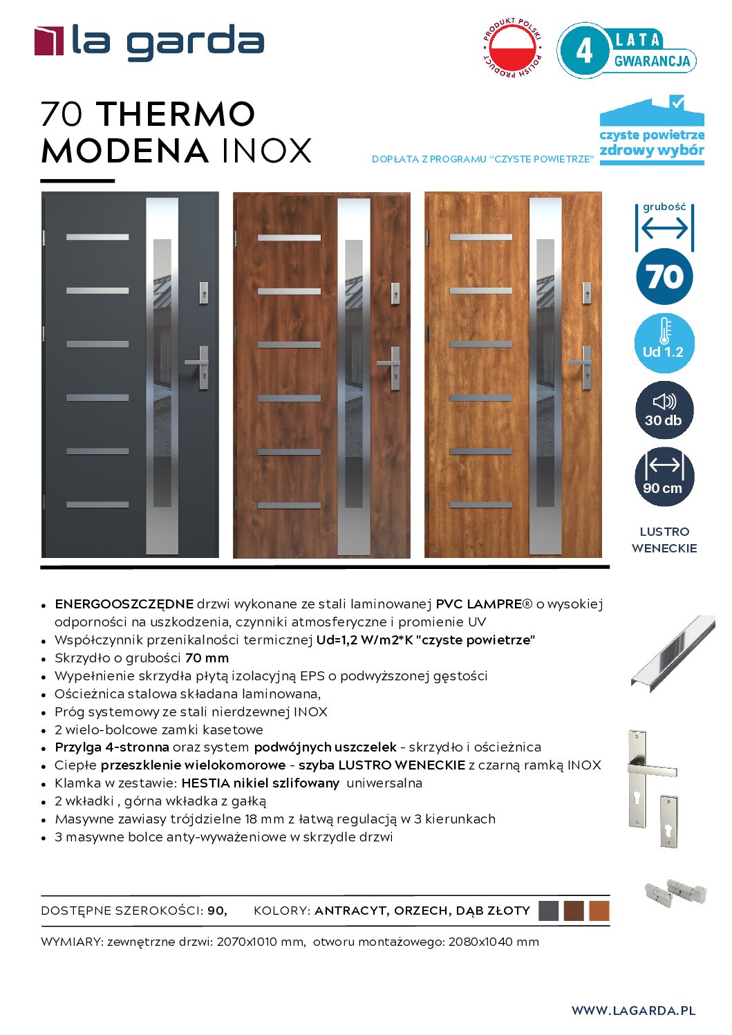 PRODUKT POLSKI – nowoczesny, zautomatyzowany proces produkcyjny w zakładach w Polsce gwarantuje trwałość i bardzo wysoką jakość wykonania – 4 lata gwarancji