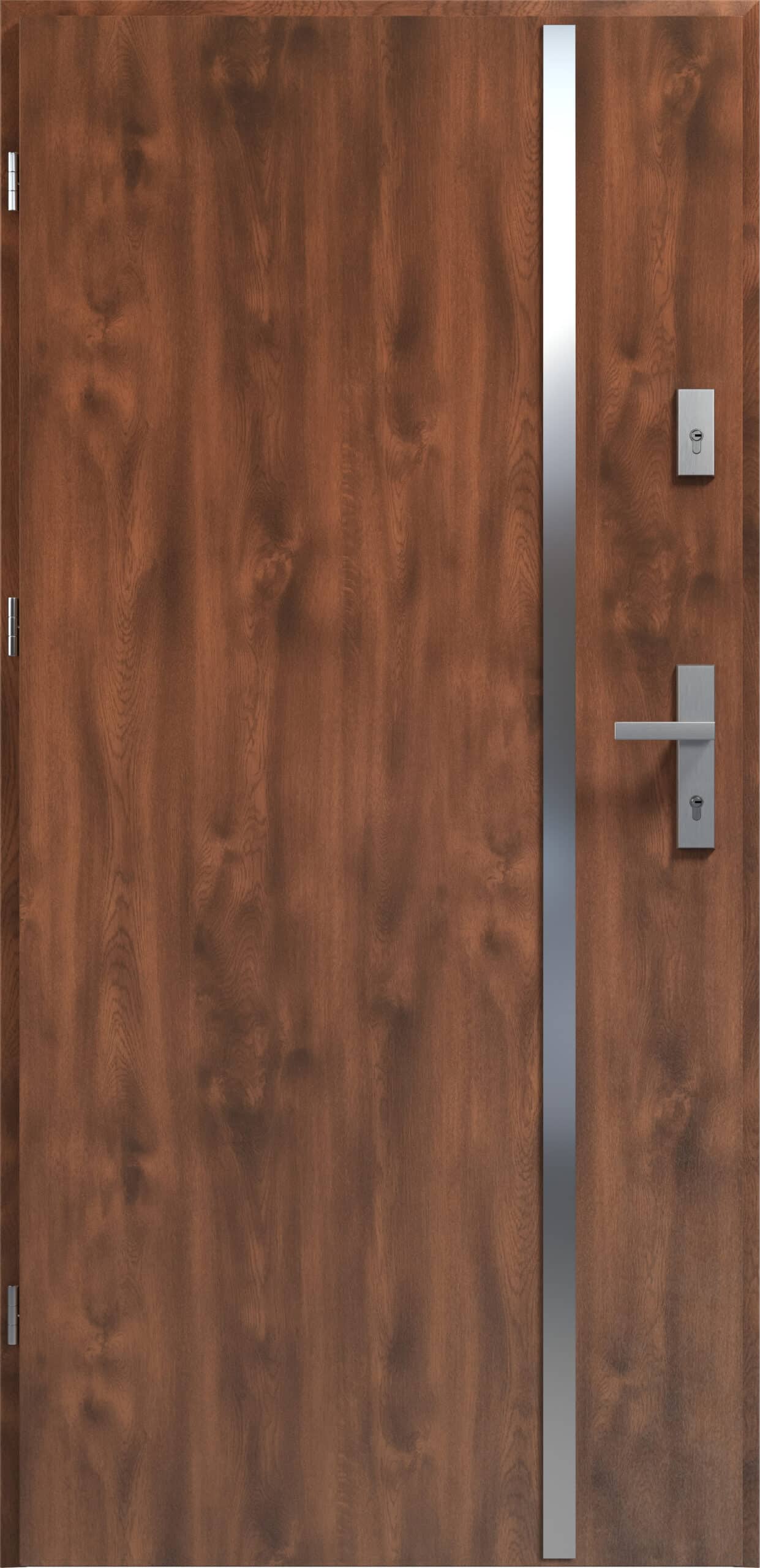 WYSOKA JAKOŚĆ – drzwi są wykonane ze stali laminowanej PVC renomowanego producenta LAMPRE® co gwarantuje najwyższą jakość: wysoka odporność na uszkodzenia, czynniki atmosferyczne i promienie UV co przekłada się  na niezmienność powierzchni i koloru okleiny.